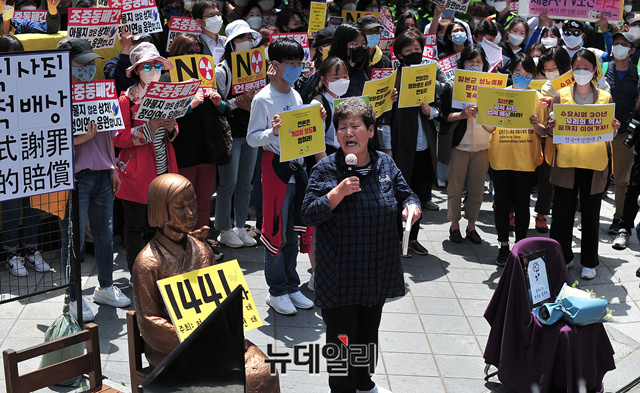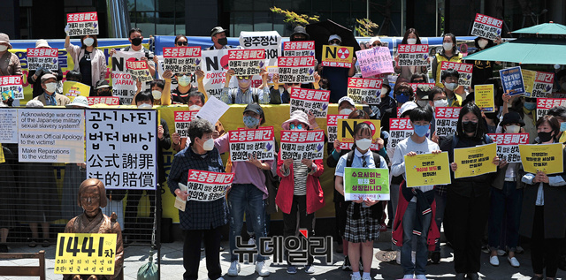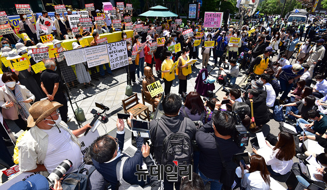인근에서는 윤미향 전 이사장을 규탄하며 '소녀상 철거' '정의연 해체'를 주장하는 우파시민단체들의 집회도 이어졌다.