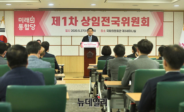 주호영 미래통합당 원내대표가 27일 오후 국회 의원회관에서 열린 제1차 상임전국위원회에서 인사말을 하고 있다.