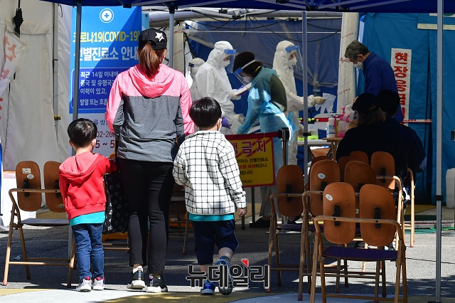 [포토] '코로나19' 검사 위해 선별진료소 찾은 아이들