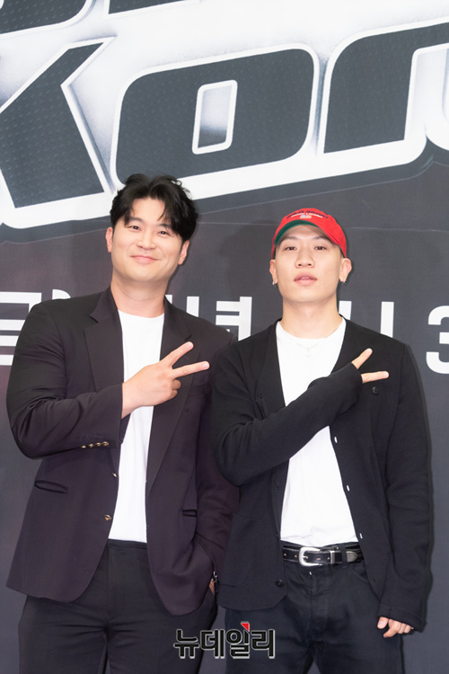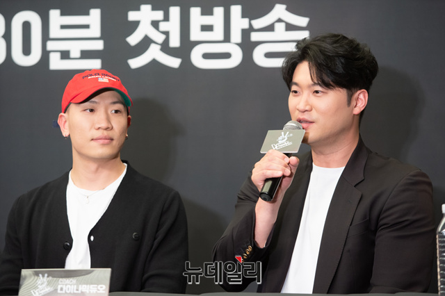 다이나믹듀오가 29일 오후 서울 마포구 스탠포드호텔에서 온라인으로 진행된 Mnet '보이스 코리아 2020' 제작발표회에서 인사말을 하고 있다.‘보이스 코리아’는 네덜란드의 ‘더 보이스(THE VOICE)’ 프로그램 포맷을 정식으로 구매해 제작한 오리지널 한국 버전이다. 뮤지션들로 구성된 코치진들이 오직 목소리만 으로 팀원을 선발해 보컬리스트로 발전시키는 프로그램.이번 '보이스 코리아 2020'에서는 새롭게 '블락(block)'이라는 룰이 추가해 지난 시즌과 차별화를 시도한다. 29일 저녁 7시 30분 첫 방송. (사진=Mnet)