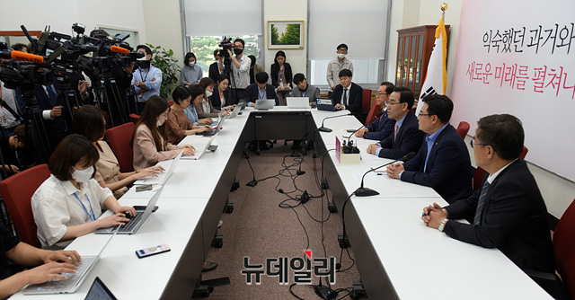 주호영 미래통합당 원내대표가 28일 오후 국회에서 청와대 오찬 관련 기자간담회를 갖고 있다. 이날 주 원내대표는 문재인 대통령의 초청을 받고 김태년 더불어민주당 원내대표와 청와대 오찬 겸 회동을 가졌다.
