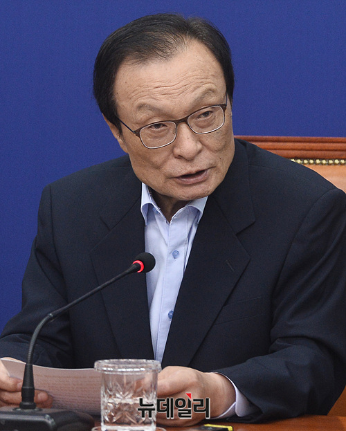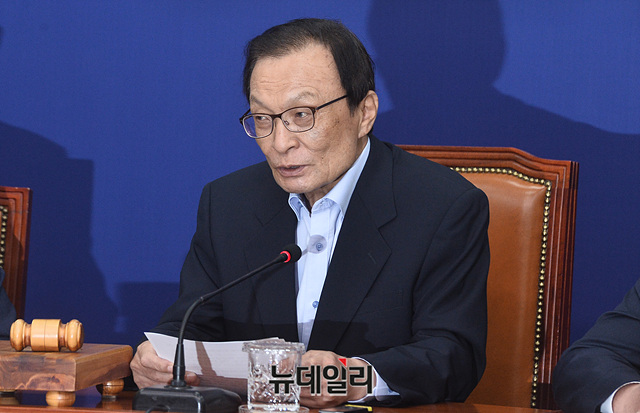 이해찬 더불어민주당 대표가 29일 오전 국회에서 열린 최고위원회의에서 모두발언을 하고 있다.