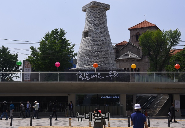 [포토] 서울도시건축전시관에 설치된 첨성대 조형물 '환생'