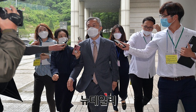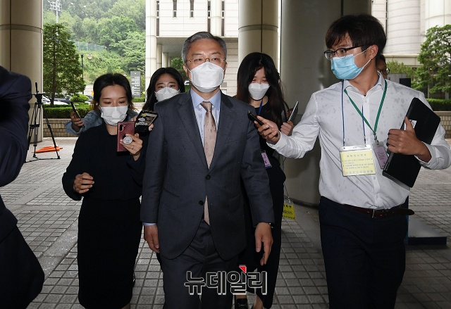 [포토] 조국 아들 '허위 인턴 증명서' 발급 혐의, 법정 나서는 최강욱