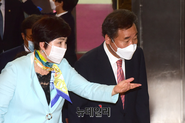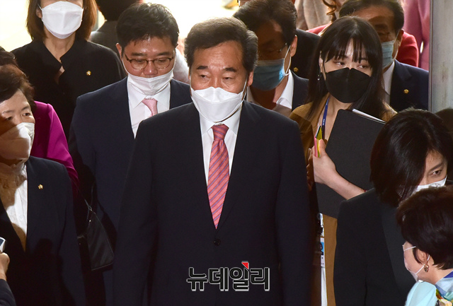 이낙연 더불어민주당 의원이 2일 오전 국회에서 열린 의원총회에 참석하기 위해 입장하고 있다.
