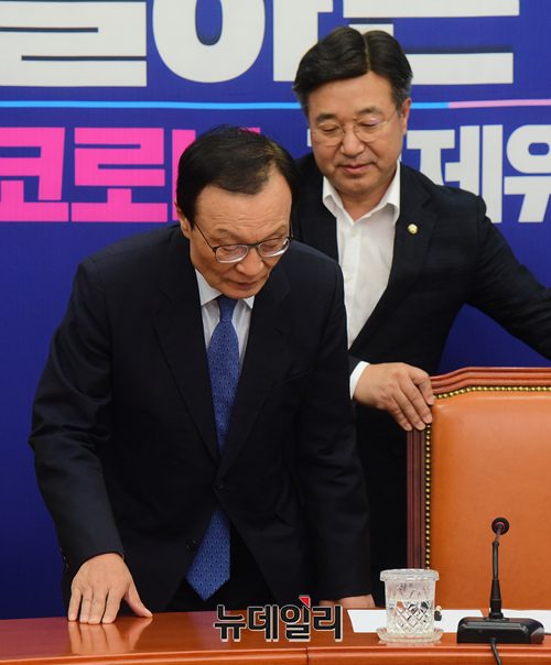 이해찬 더불어민주당 대표가 2일 오후 국회에서 열린 정례기자간담회에 참석하기 위해 입장하고 있다.