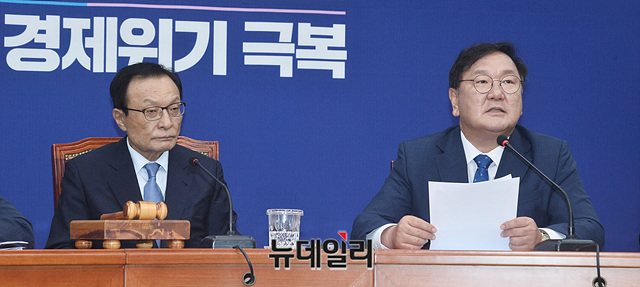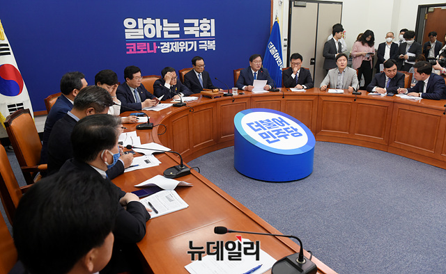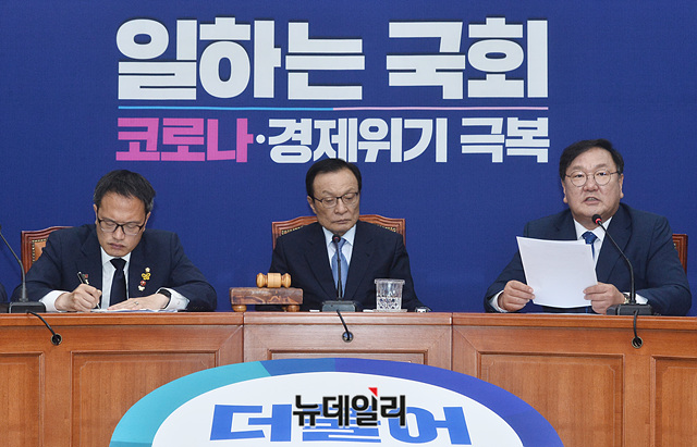 김태년 더불어민주당 원내대표가 3일 오전 국회에서 열린 최고위원회의에서 모두발언을 하고 있다.