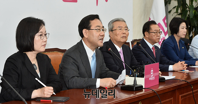 주호영 미래통합당 원내대표가 4일 오전 국회에서 열린 비상대책위원회의에서 모두발언을 하고 있다.