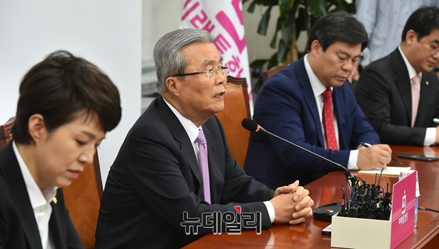 김종인 미래통합당 비상대책위원장이 4일 오후 국회에서 열린 기자간담회에서 취재진의 질문에 답변을 하고 있다.