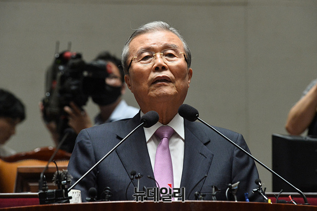 김종인 미래통합당 비상대책위원장이 4일 오후 국회에서 열린 미래통합당 제2차 의원총회에서 발언을 하고 있다.