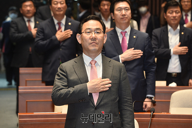 [포토] 의총서 국민의례하는 미래통합당