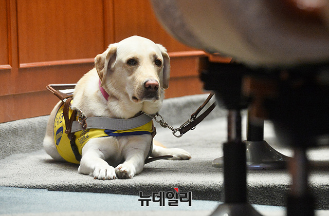 [포토] 국회 예결위장에 자리한 '김예지-조이'