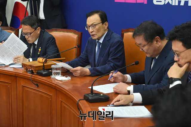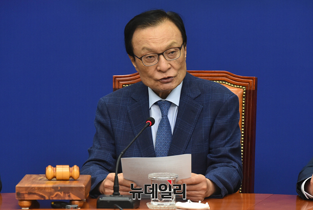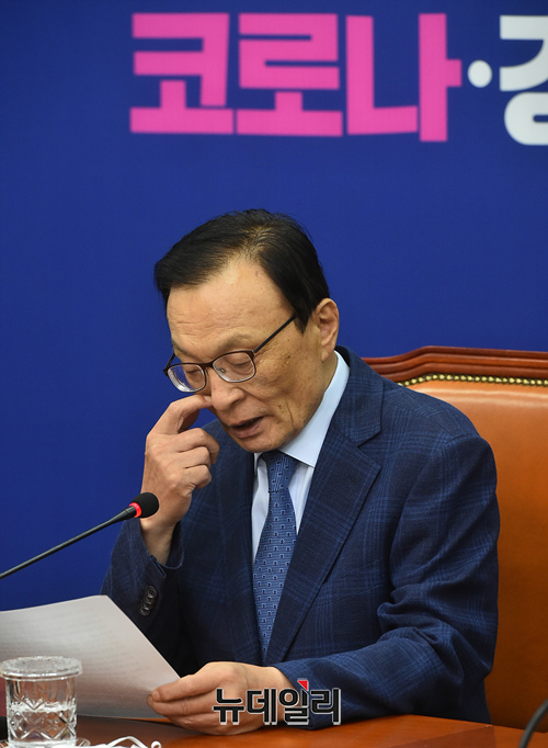 이해찬 더불어민주당 대표가 5일 오전 국회에서 열린 최고위원회의에 참석해 모두발언을 하고 있다.