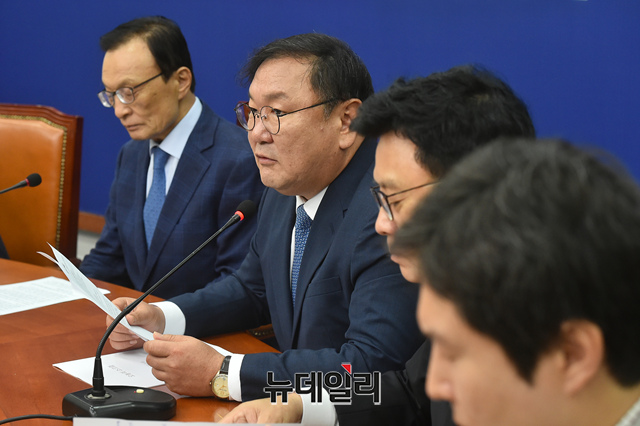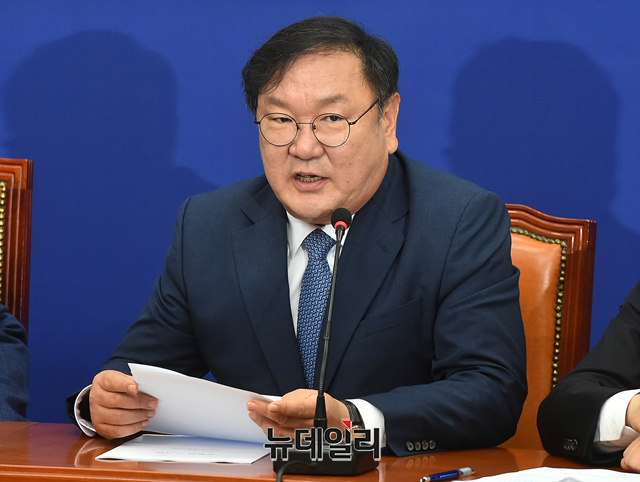 김태년 더불어민주당 원내대표가 5일 오전 국회에서 열린 최고위원회의에 참석해 모두발언을 하고 있다.