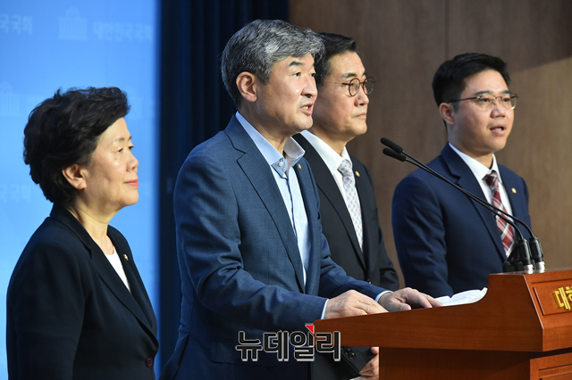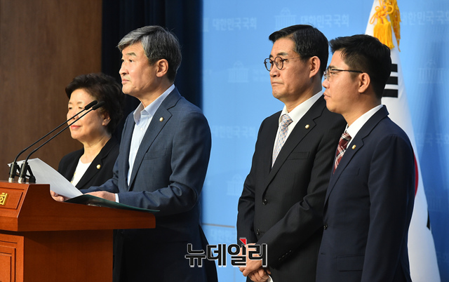 미래통합당 서정숙·조태용·신원식·지성호 의원이 5일 오후 국회 소통관에서 기자회견을 갖고 '김여정 하명법' 관련 기자회견을 갖고 있다.