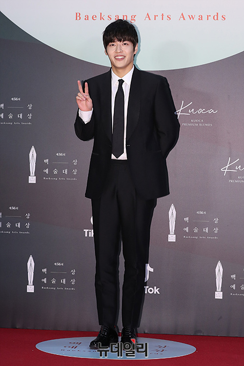 배우 강하늘이 5일 오후 경기 고양시 킨텍스에서 온라인으로 진행된 '제56회 백상예술대상' 레드카펫 행사에서 포토타임을 갖고 있다. '백상예술대상'은 TV·영화·연극을 아우르는 국내 종합예술시상식이다.