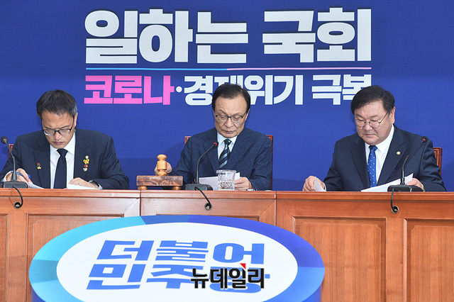 이해찬 더불어민주당 대표가 8일 오전 국회에서 열린 최고위원회의에 참석해 의사진행을 하고 있다.