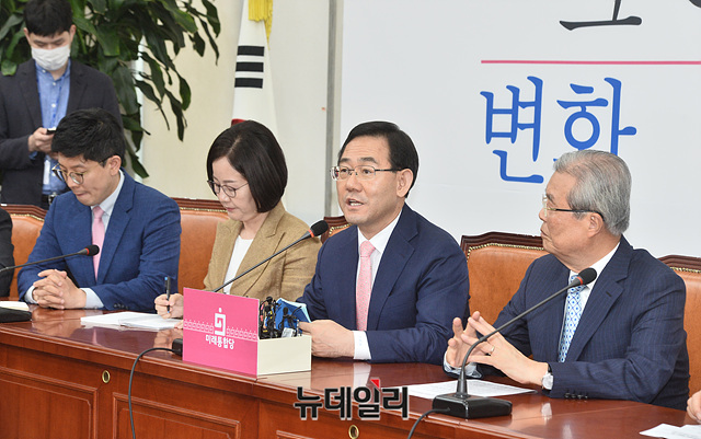 주호영 미래통합당 원내대표가 8일 오전 국회에서 열린 비상대책위원회의에서 모두발언을 하고 있다.