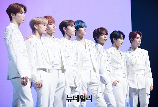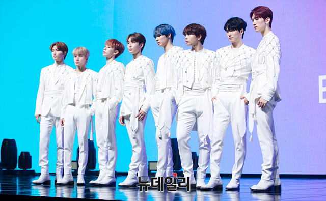 아이돌그룹 'E’LAST(엘라스트)'가 8일 오후 온라인으로 진행된 데뷔 미니앨범 '데이드림(Day Dream)' 쇼케이스에서 포토타임을 갖고 있다.