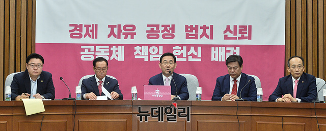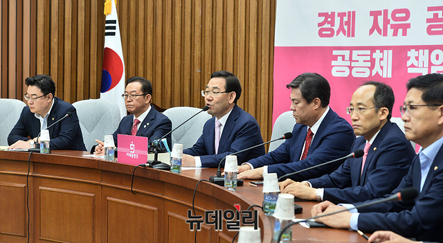 주호영 미래통합당 원내대표가 9일 오전 국회에서 열린 원내대책회의에서 모두발언을 하고 있다.