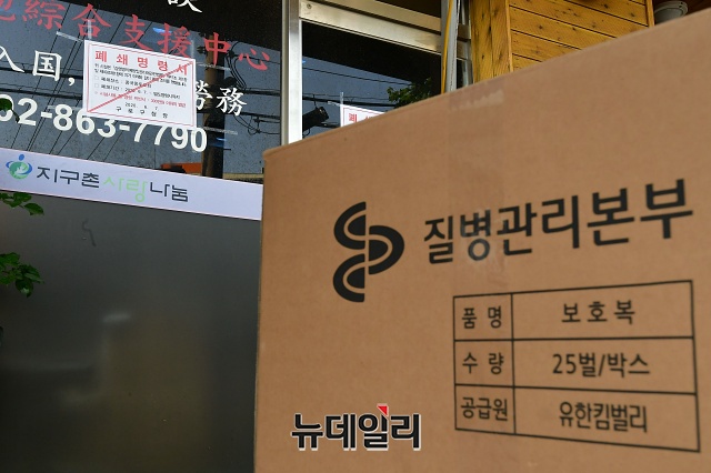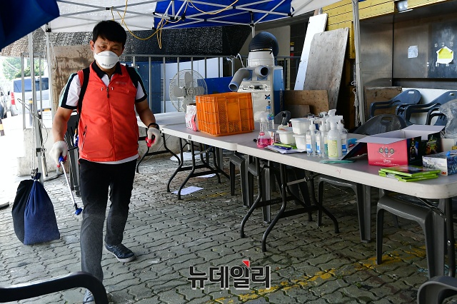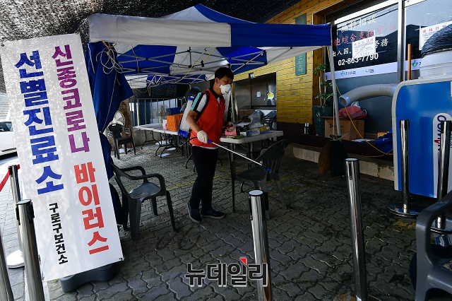 구로구보건소 관계자들이 9일 오후 서울 구로구 중국동포교회에 마련된 임시 선별진료소에서 이틀동안 300여 명의 검체 채취를 마무리하고 철수하고 있다.중국동포교회는 7일 다단계 판매업체 '리치웨이'를 다녀온 남성을 시작으로 9명의 '코로나19(중국 우한 폐렴)' 확진자가 발생했다.구로구는 이곳에 임시 선별진료소를 설치해 300여 명의 검체를 채취했다. 구로구 관계자는 "300여 명 가운데 194명은 전원 음성 판정을 받았고, 나머지는 결과를 지켜봐야 한다"며 "검체를 다 채취해 교회 앞에 설치한 임시선별진료소를 철수한다"고 밝혔다.