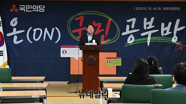 안철수 국민의당 대표가 10일 오전 국회 의원회관에서 열린 온국민공부방 제1강 '우리 시대의 정의란 무엇인가'에서 인사말을 하고 있다.