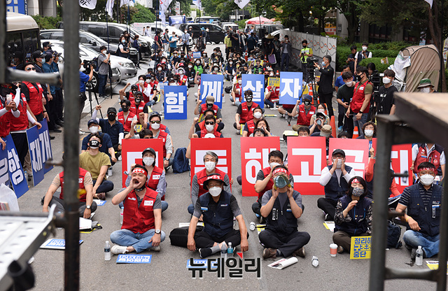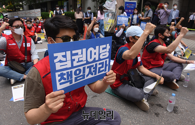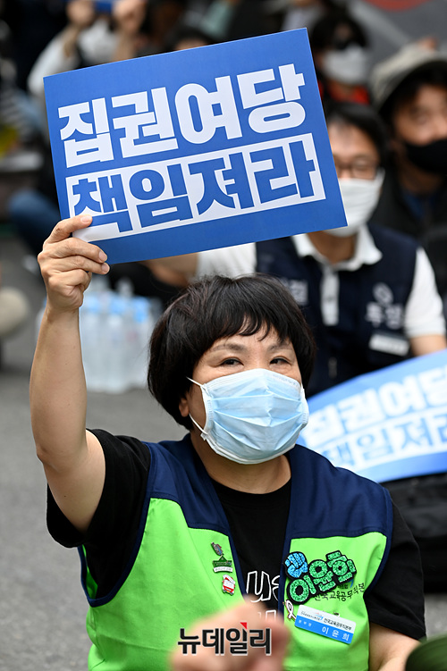 [포토] 공공운수노조 "민주당, 노동자 정리해고 구조조정 책임져라"