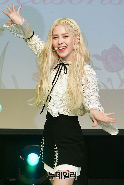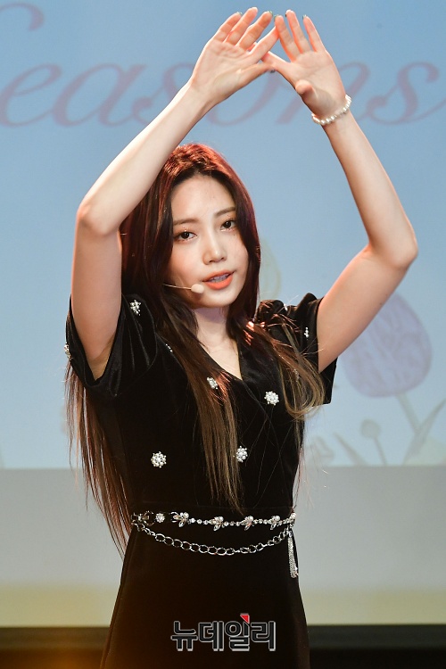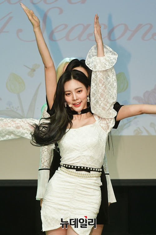 걸그룹 다이아가 10일 오후 서울 강남구 일지아트홀에서 열린 미니앨범 'flower 4 seasons(플라워 포 시즌스)' 쇼케이스에서 무대를 선보이고 있다.