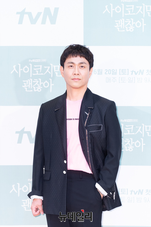 배우 오정세가 10일 오후 온라인으로 열린 tvN 새 토일드라마 '사이코지만 괜찮아(극본 조용, 연출 박신우)' 제작보고회에서 포토타임을 갖고 있다.