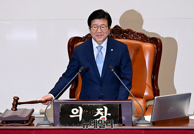박병석 국회의장이 10일 오후 국회 본회의장에서 열린 제379회 국회(임시회) 제3차 본회의에서 국회상임위원회 위원 정수 관련 일부개정규칙안을 가결하고 있다.