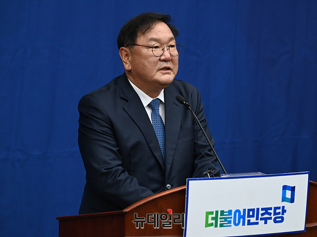 김태년 더불어민주당 원내대표가 10일 오후 국회에서 열린 의원총회에서 모두발언을 하고 있다.