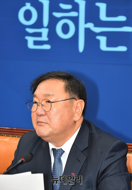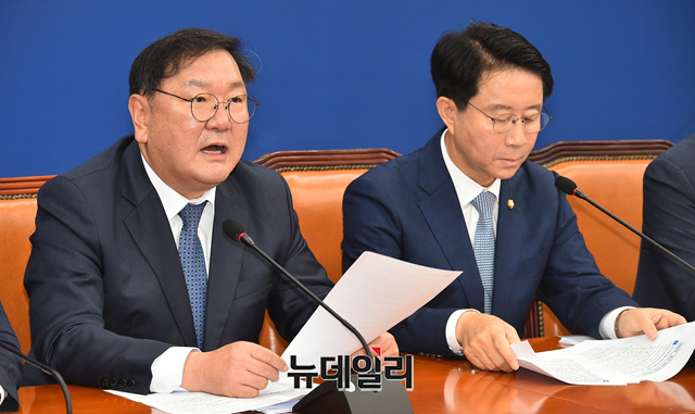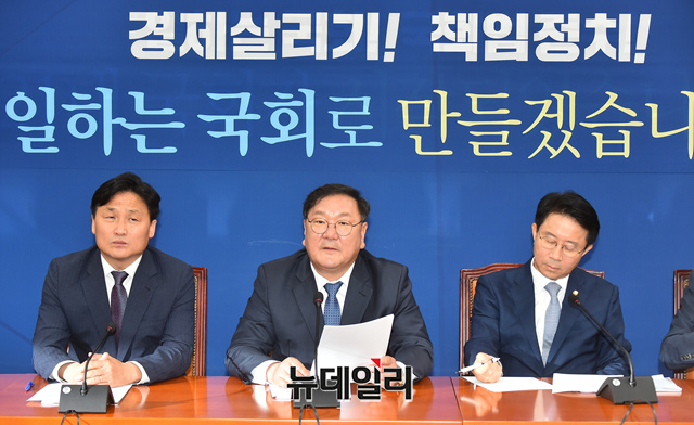 김태년 더불어민주당 원내대표가 11일 오전 국회에서 열린 정책조정회의에서 모두발언을 하고 있다.