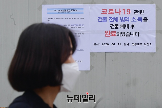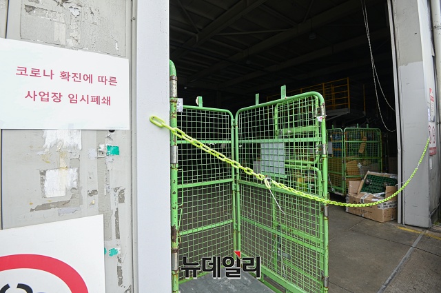 '코로나19(중국 우한 폐렴)' 확진자가 발생한 서울 영등포구 CJ대한통운 영등포지점에 12일 오후 임시 폐쇄 안내문이 붙어있다.안내문에는 "CJ대한통운 영등포터미널 종사자 중 코로나19 확진자가 발생해 해당 건물은 방역조치를 완료했다. 밀첩접촉자들은 점원 검사 후 자가격리 조치됐다"고 적혀있다.영등포구청은 11일 이곳에서 근무하던 택배기사가 코로나19 확진 판정을 받았다고 밝혔다. 이어 해당 지점 근무자 250명에게 검체 검사를 받도록 지시했다.