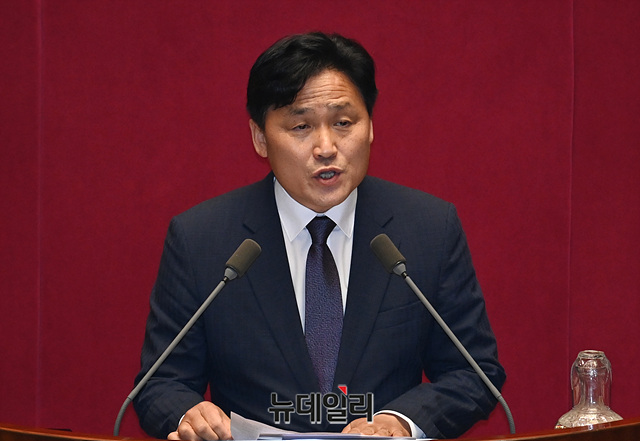 김영진 더불어민주당 원내총괄수석부대표가 12일 오후 국회 본회의장에서 열린 제379회 국회(임시회) 제4차 본회의에서 의사진행 발언을 하고 있다.