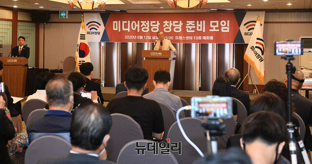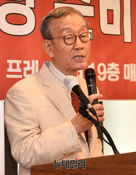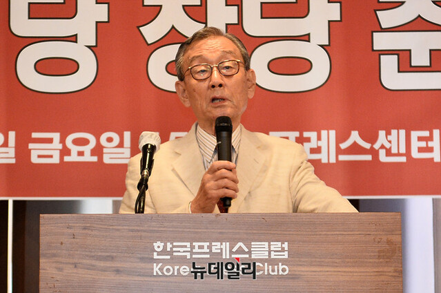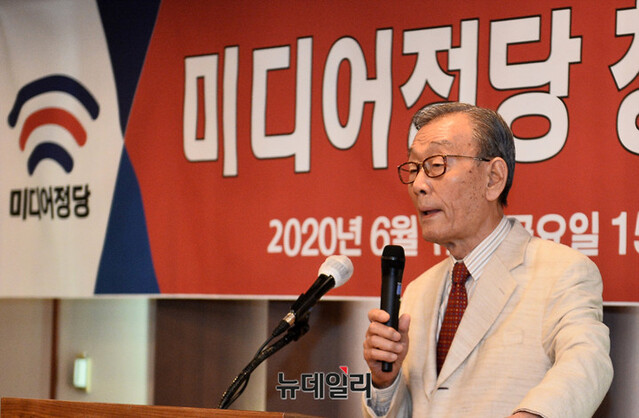 노재봉 전 국무총리가 12일 오후 서울 중구 한국프레스센터에서 열린 미디어정당 창당준비위원회 발기인 대회에서 축사를 하고 있다.