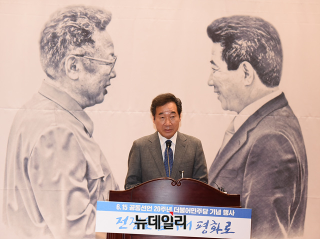 이낙연 더불어민주당 의원이 15일 오전 국회 의원회관에서 열린 6.15 공동선언 20주년 더불어민주당 기념행사에서 축사를 하고 있다.