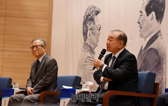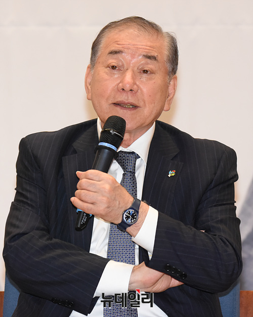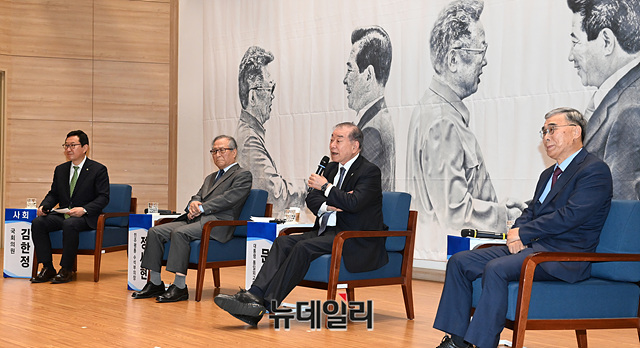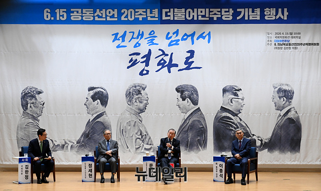 문정인 대통령 통일외교안보 특보가 15일 오전 국회 의원회관에서 열린 6.15 공동선언 20주년 더불어민주당 기념행사 3부 라운드테이블에 참석해 발언을 하고 있다.