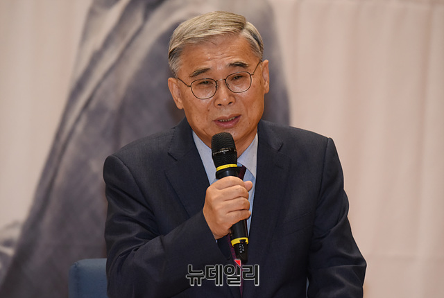 이종석 전 통일부 장관이 15일 오전 국회 의원회관에서 열린 6.15 공동선언 20주년 더불어민주당 기념행사 3부 라운드 테이블에 참석해 발언을 하고 있다.