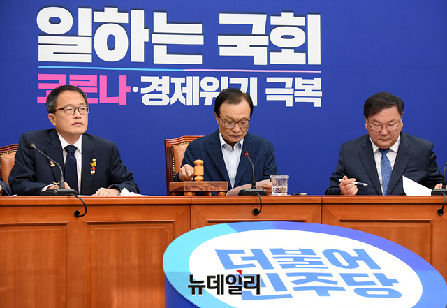 이해찬 더불어민주당 대표가 15일 오전 국회에서 열린 최고위원회의에서 의사진행을 하고 있다.