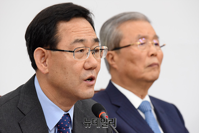 주호영 미래통합당 원내대표가 15일 오전 국회에서 열린 비상대책위원회의에서 모두발언을 하고 있다.