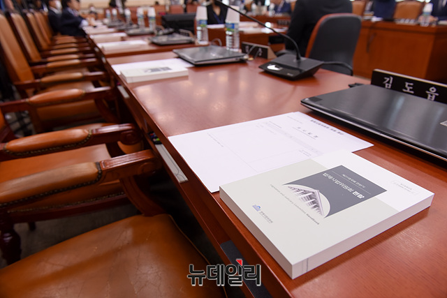 제21대 국회 법제사법위원회 첫 전체회의가 국회에서 열린 16일 오후 미래통합당 의원들의 자리가 텅 비어있다. 이날 통합당 의원이 불참한 가운데 법사위 전체회의가 진행됐다.