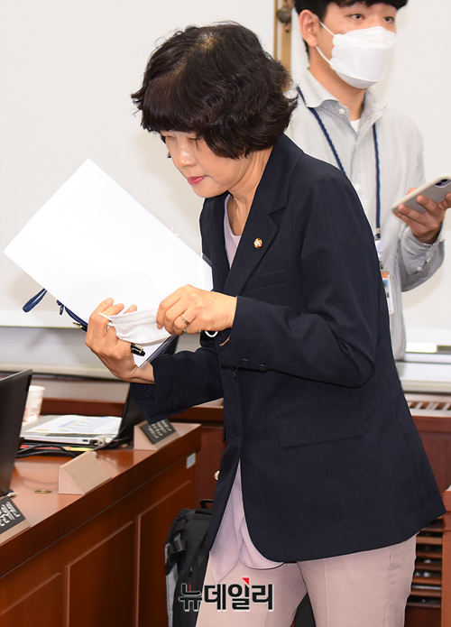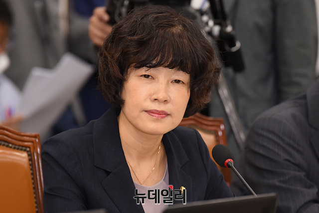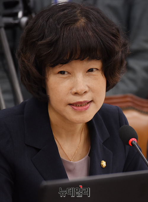 최연숙 국민의당 의원이 17일 오전 국회에서 열린 보건복지위원회 전체회의에서 발언을 하고 있다. 이날 최 의원은 "여·야 합의 없이 열린 전체회의"라며 한정애 보건복지위원장에게 산회를 요청한 뒤 회의장에서 퇴장했다.