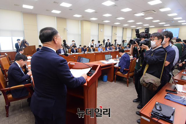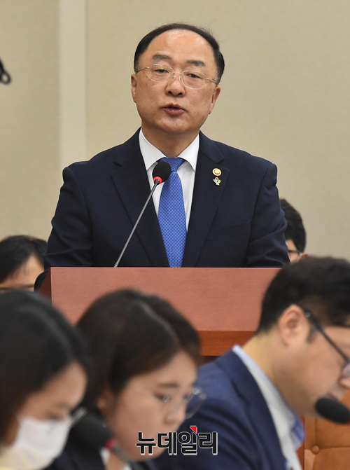 홍남기 경제부총리 겸 기획재정부 장관이 17일 오전 국회에서 열린 기획재정위원회 전체회의에 출석해 업무보고를 하고 있다.