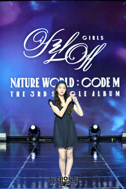 걸그룹 NATURE(네이처) 유채가 17일 오후 온라인으로 진행된 3번째 싱글앨범 'NATURE WORLD: CODE M(네이처 월드: 코드 엠)' 쇼케이스에서 포토타임을 갖고 있다.이번 앨범 'NATURE WORLD: CODE M'은 지난해 11월 발매한 'NATURE WORLD: CODE A(네이처 월드: 코드 에이)'와 이어지는 'NATURE WORLD' 프로젝트의 두 번째 앨범이다.강렬하고 중독성 있는 신스테마와 트로피칼 비트의 타이틀곡 '어린애(Girls)'를 비롯해 3곡을 담았다. (사진=n.cH엔터테인먼트)