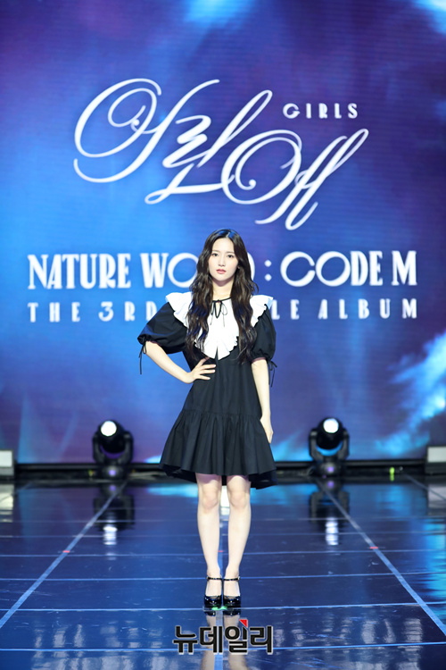 걸그룹 NATURE(네이처) 채빈이 17일 오후 온라인으로 진행된 3번째 싱글앨범 'NATURE WORLD: CODE M(네이처 월드: 코드 엠)' 쇼케이스에서 포토타임을 갖고 있다.이번 앨범 'NATURE WORLD: CODE M'은 지난해 11월 발매한 'NATURE WORLD: CODE A(네이처 월드: 코드 에이)'와 이어지는 'NATURE WORLD' 프로젝트의 두 번째 앨범이다.강렬하고 중독성 있는 신스테마와 트로피칼 비트의 타이틀곡 '어린애(Girls)'를 비롯해 3곡을 담았다. (사진=n.cH엔터테인먼트)
