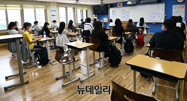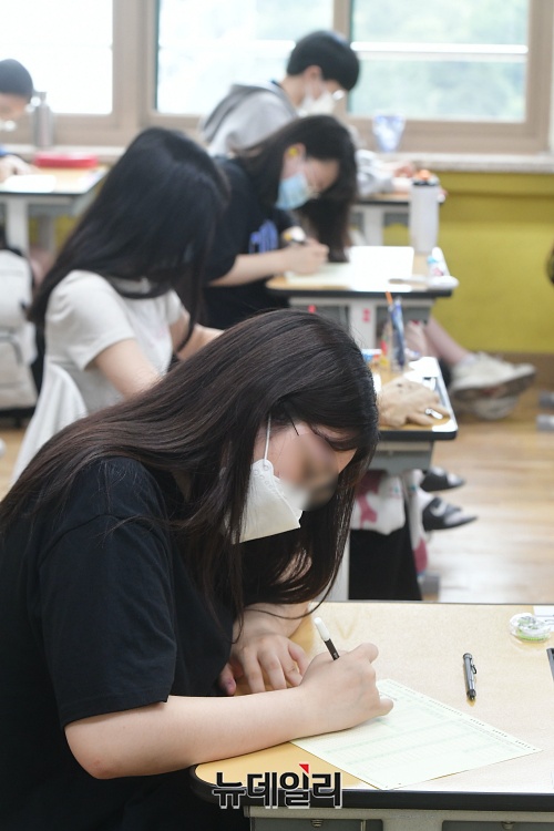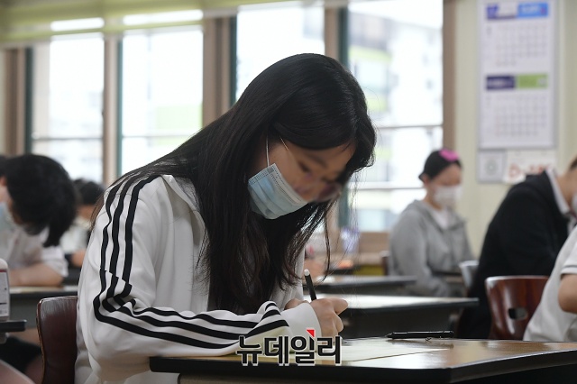 [포토] 6월 모의평가 시작..마스크 착용하고 시험보는 학생들