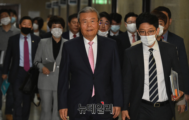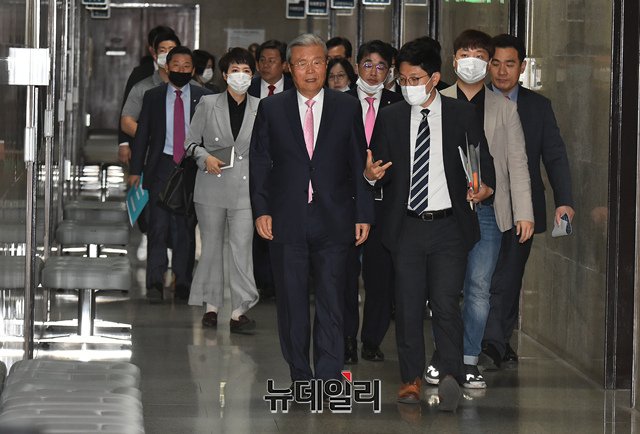 김종인 미래통합당 비상대책위원장이 18일 오전 국회에서 열린 비상대책위원회의에 참석하기 위해 입장하고 있다.