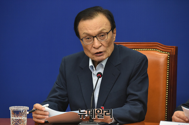 이해찬 더불어민주당 대표가 18일 오후 국회에서 열린 더불어민주당 외교안보통일자문회의에 참석해 모두발언을 하고 있다.