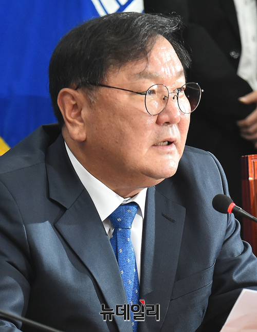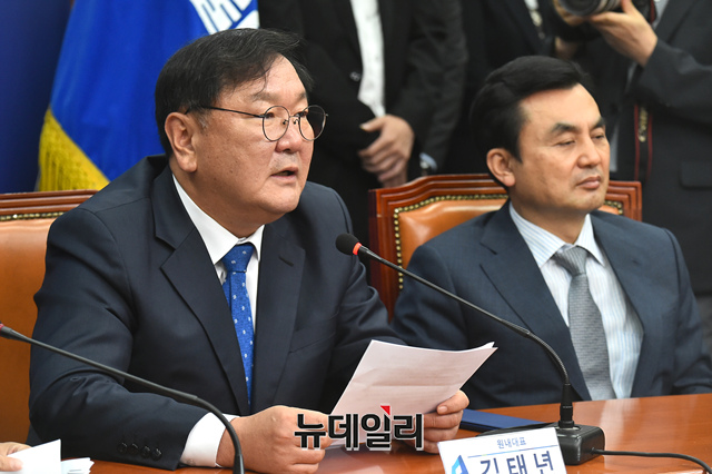 김태년 더불어민주당 원내대표가 18일 오후 국회에서 열린 더불어민주당 외교안보통일자문회의에 참석해 모두발언을 하고 있다.