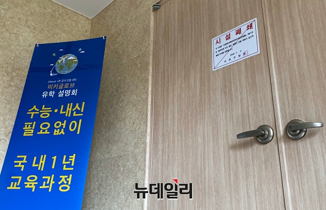 '코로나19(중국 우한 폐렴)' 확진자가 발생한 서울 서초구 미키어학원에 19일 오후 임시 폐쇄 안내문이 붙어있다.